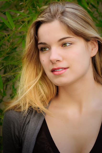 Beautiful! I really like the one next to the tree where hair is hiding one eye and the pirouette. Pia's makeup is beautifully applied and looks as if she isn't wearing any in the last pics (e.g. #4), but I agree with your sister in the first three (especially #1 and #3); you can tell she is wearing heavy foundation. At least that's what caught my eye, anyway... I found it distracting.